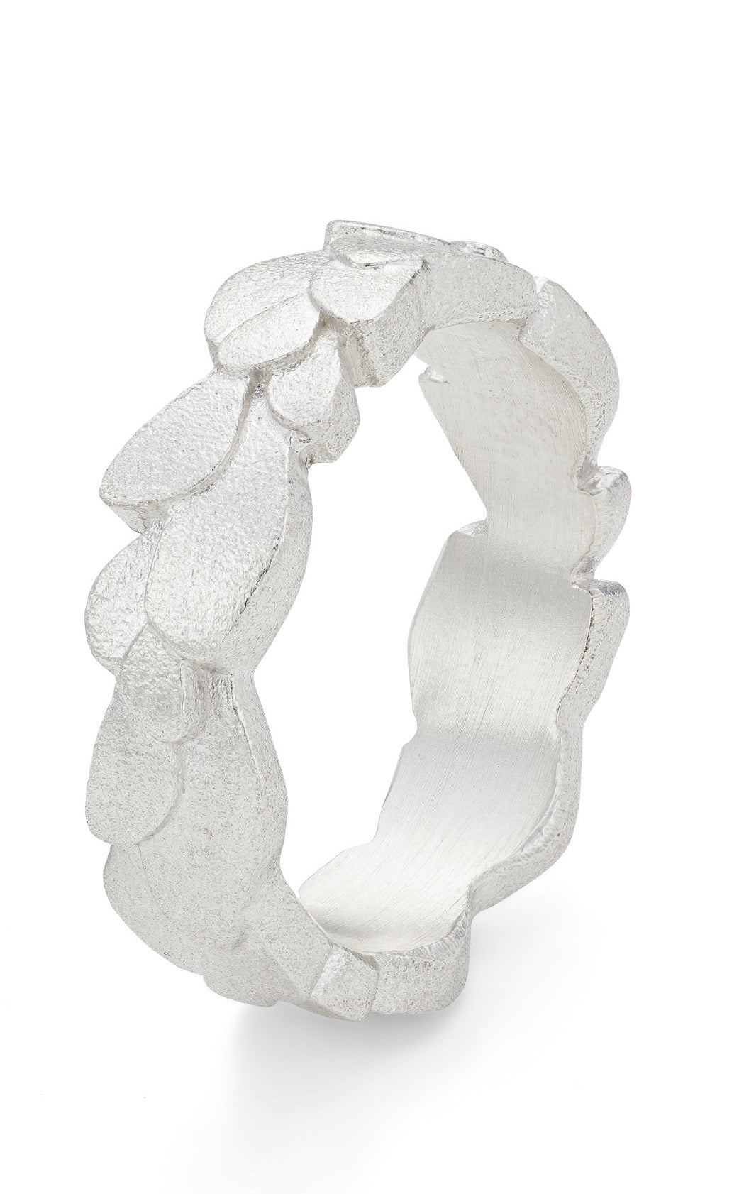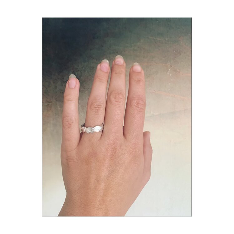 This lovely layered wind ring has been hand cast in wax before casting in silver, finishing and being given a frosted finish. Very pretty little ring.