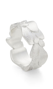 This lovely layered wings ring has been hand cast in wax before casting in silver, finishing and being given a frosted finish. Very pretty little ring.