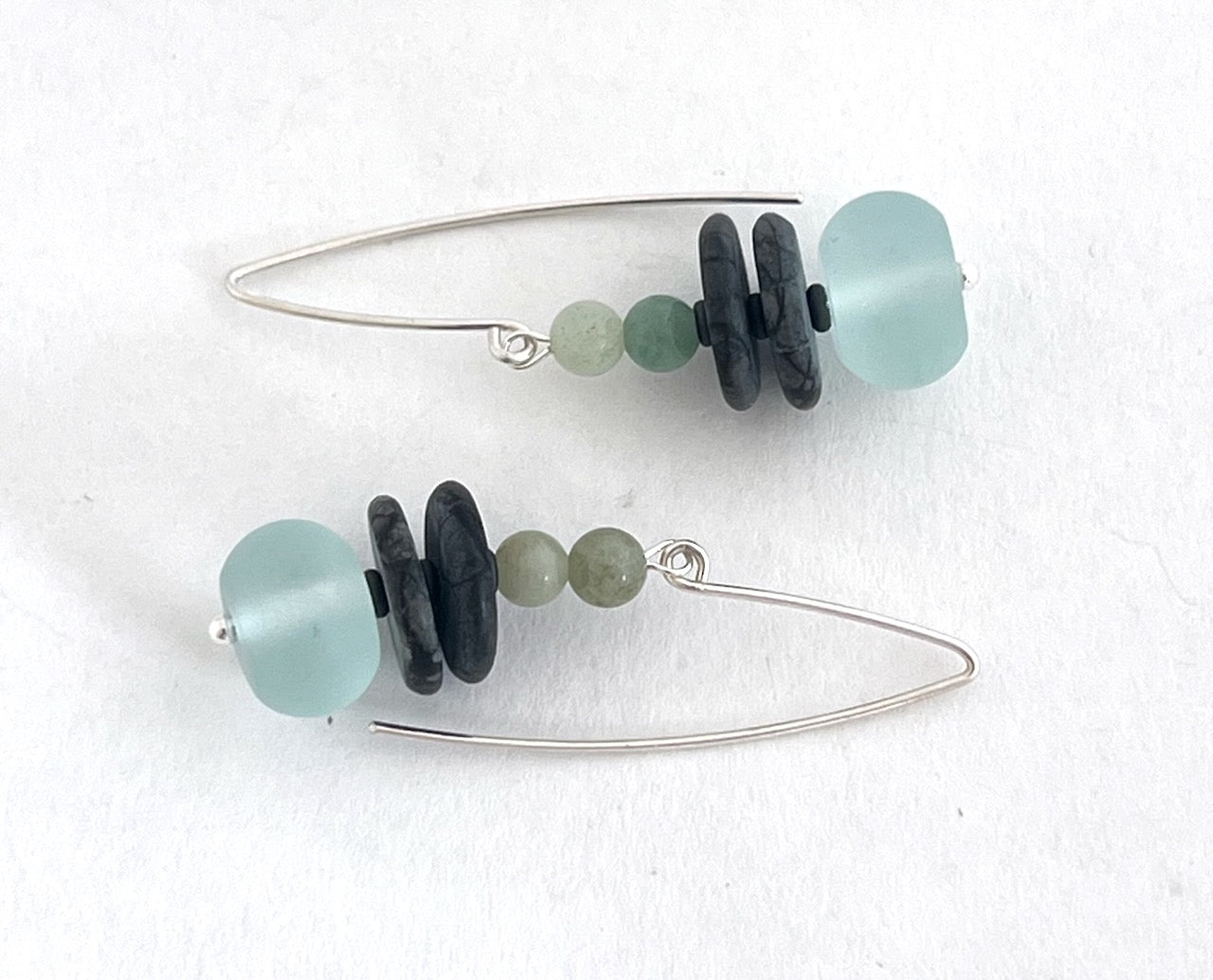 A fantastic statement pair of earrings featuring sea glass paired perfectly with amazonite and granite and many more luscious semi precious stones - perfect for those beachy vibes.