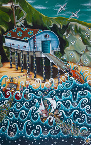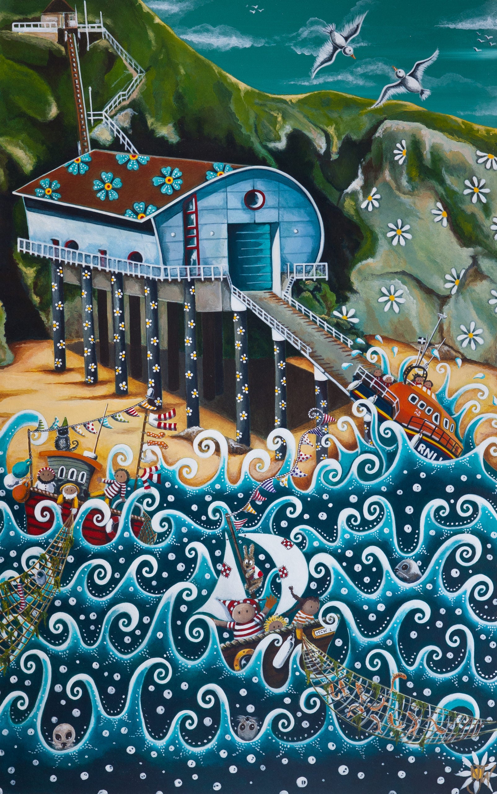 A beautifully presented, limited edition print of local artist Nicola Whites ‘Rescuers’ depicting a traditional Cornish lifeboat station