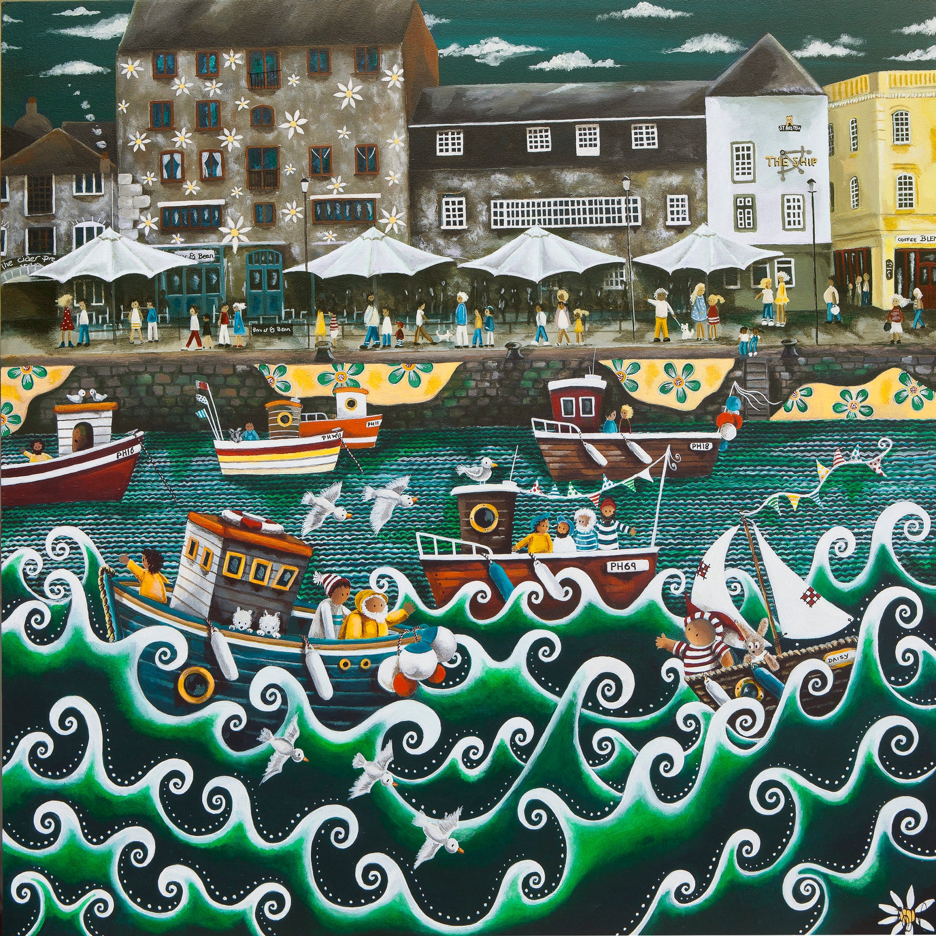 A beautifully presented, limited edition print of local artist Nicola Whites 'When The Boat Comes In'