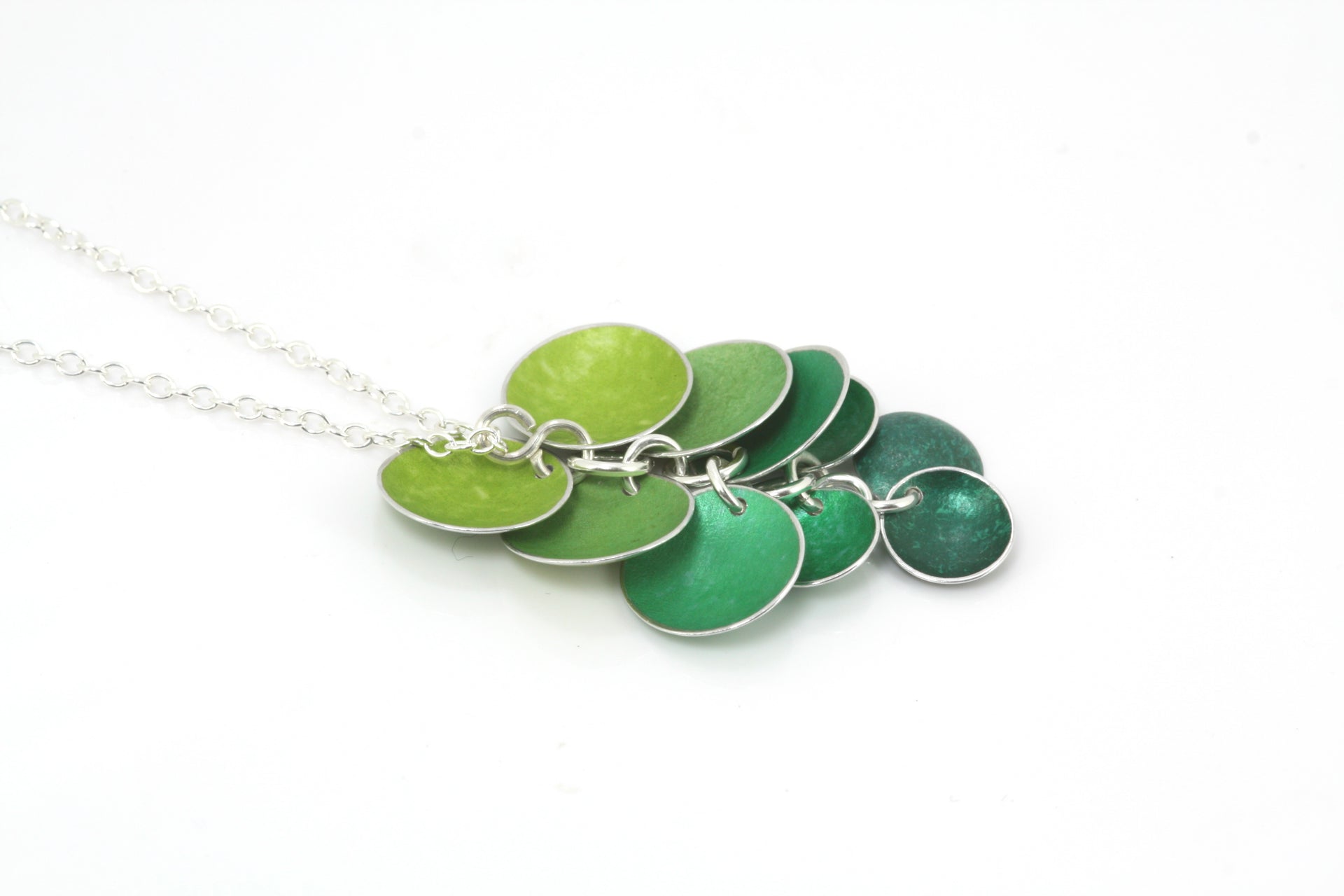 Lime, Green and Forest 10 Disk Cluster Necklace