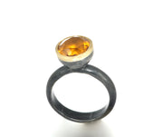 Inspired by clusters of pods and flowers this wonderfully versatile ring can be worn in a variety of ways. Created from oxidised hand-formed silver it has a warm golden orange citrine set in an 18ct gold gum nut setting.