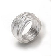 Hammered and textured silver wire is wrapped and woven to produce a unique ring that is beautifully simple and elegant. *Please note that as it is handmade it may vary from picture.
