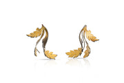 Hand pierced Acanthus earrings created in sterling silver and decorated with 24ct gold foil through the process of Keum Boo. The surface has a slight texture with the oxidised silver and gold blending beautifully.