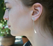 Simple yet elegant, these hand-made contemporary earrings consist of a slim piece of silver, beaten into an elegant, tapering shape. The whole length is softly textured by the hammer's action. A simple form that makes a bold statement piece. Dress them up or down, the studbacks make them easy to wear.
