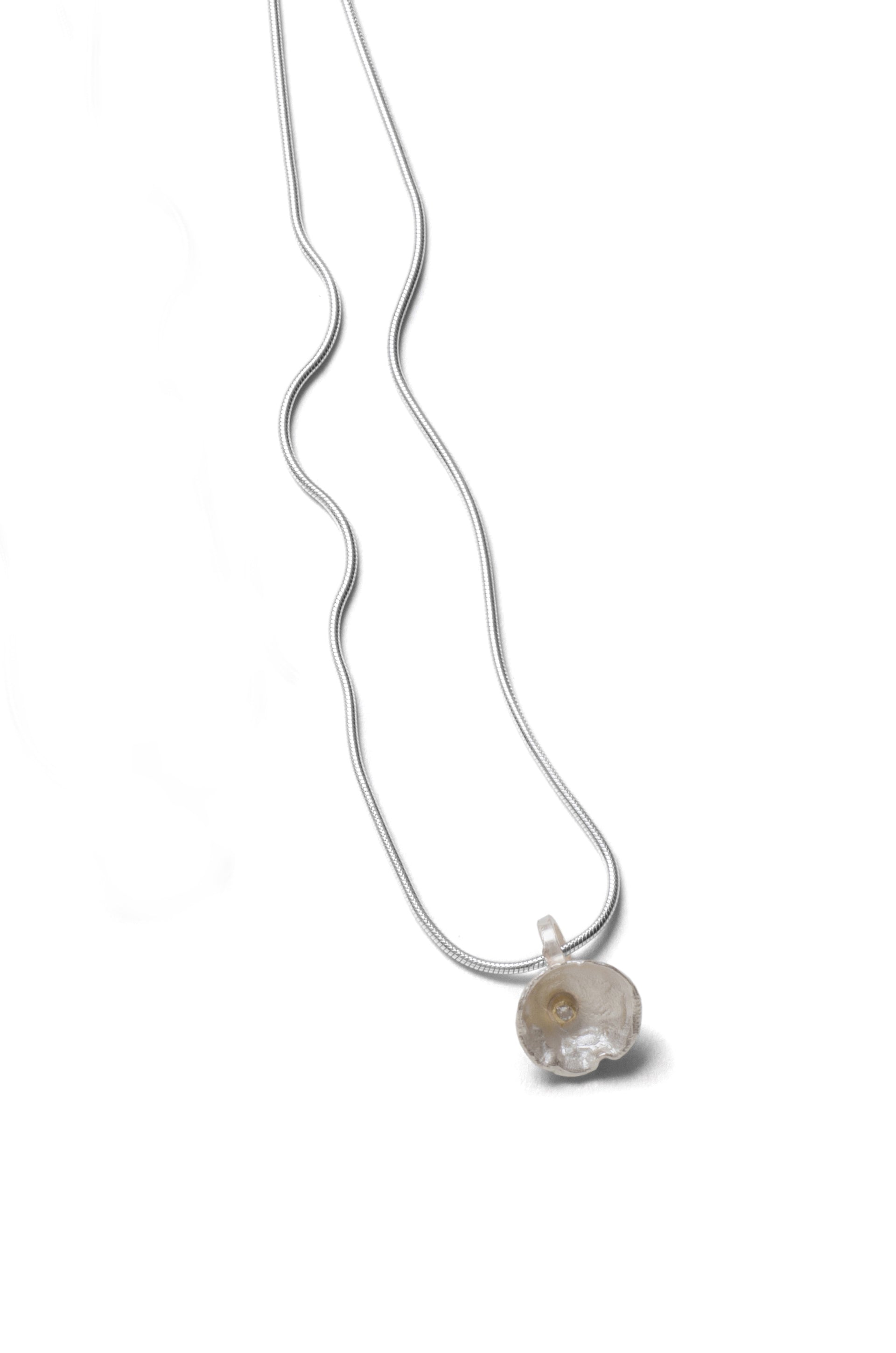 Reticulated silver formed cup with a small round brilliant cut diamond collet set in beautiful warm 18ct gold, this pendant is beautifully elegant and simple.