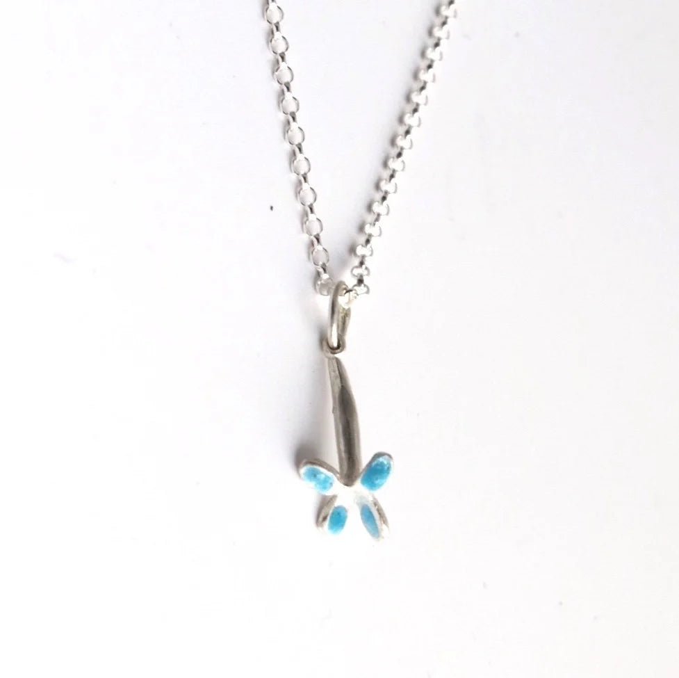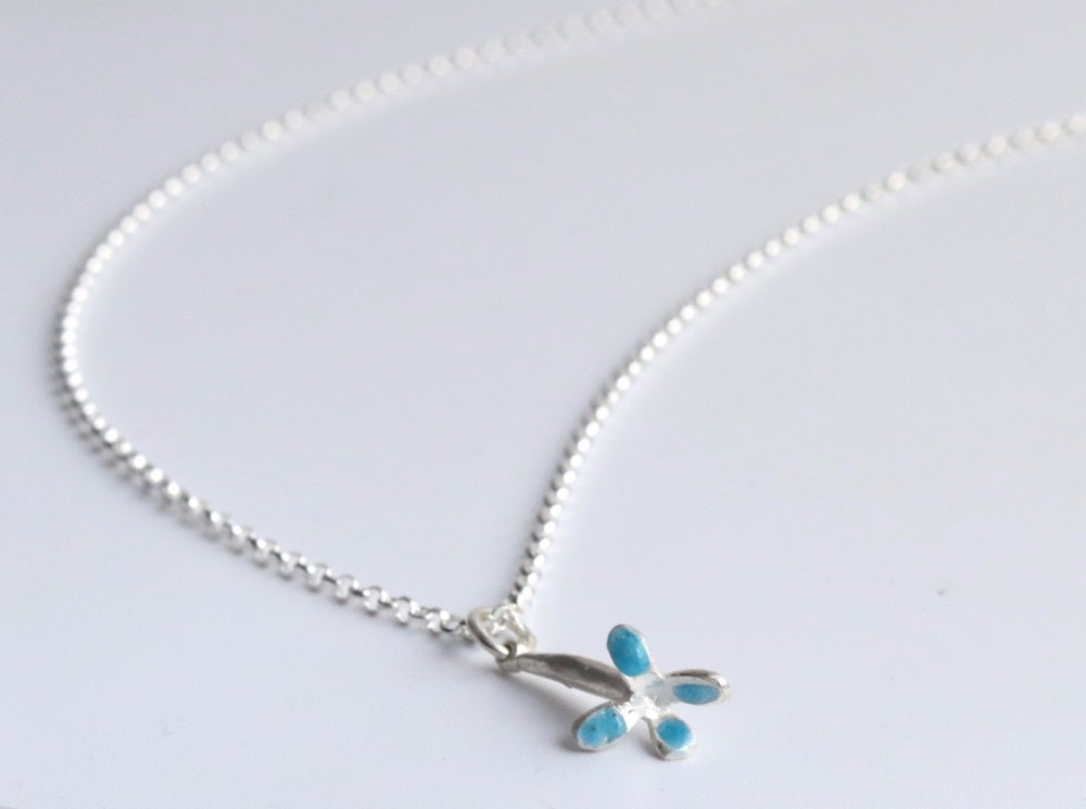 This necklace is beautifully handcrafted with sterling silver and blue vitreous enamel. A delicate little pendant that can be worn every day.