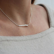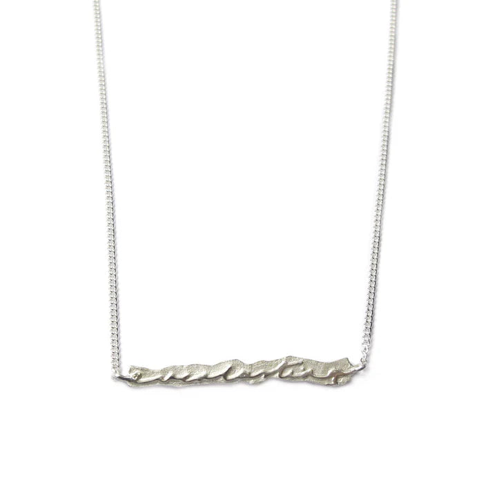 A silver pendant etched 'everlasting' and highlighted with polished finish, hanging on a fine curb chain.