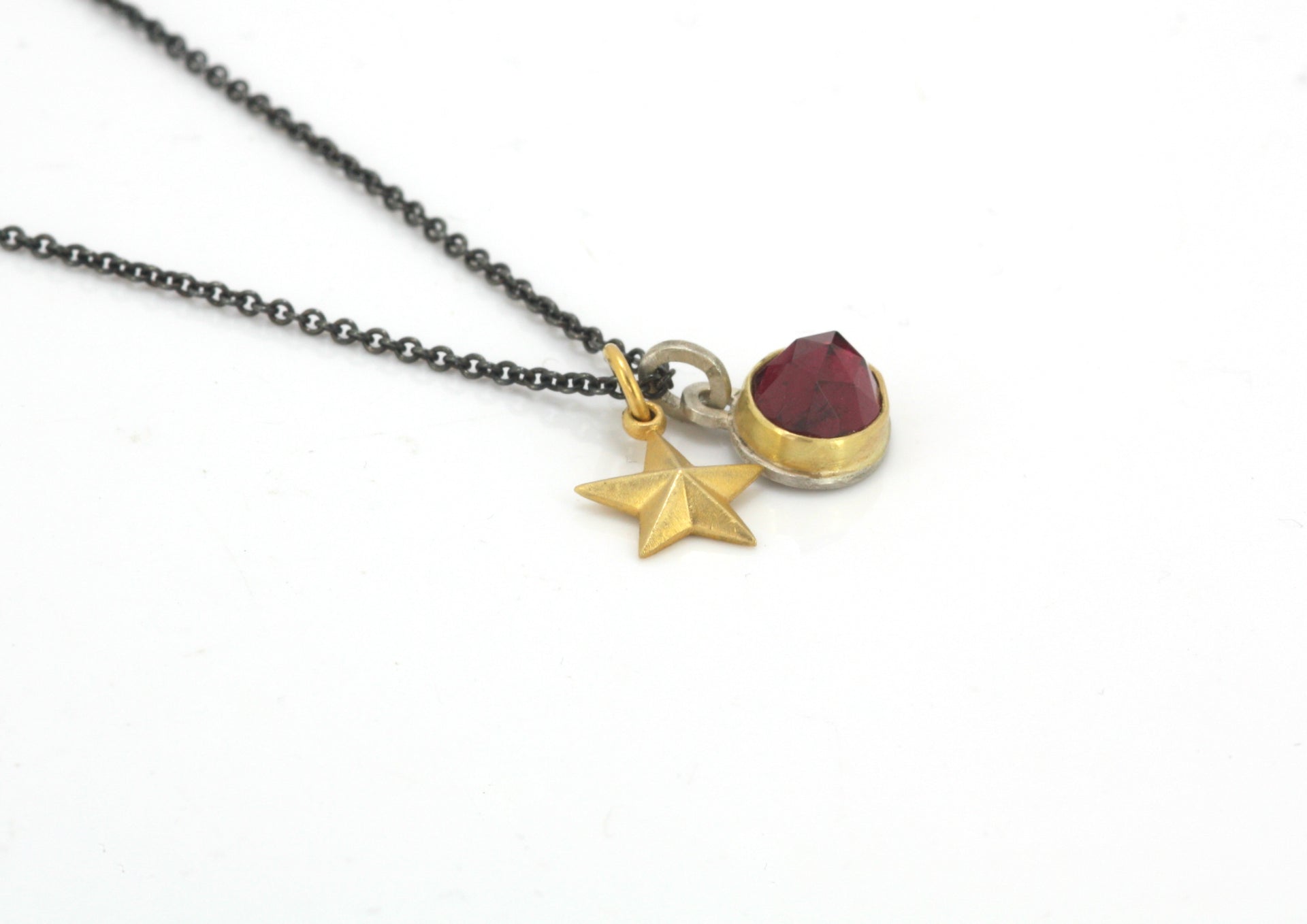 Garnet and 18ct Gold Oxidised Necklace