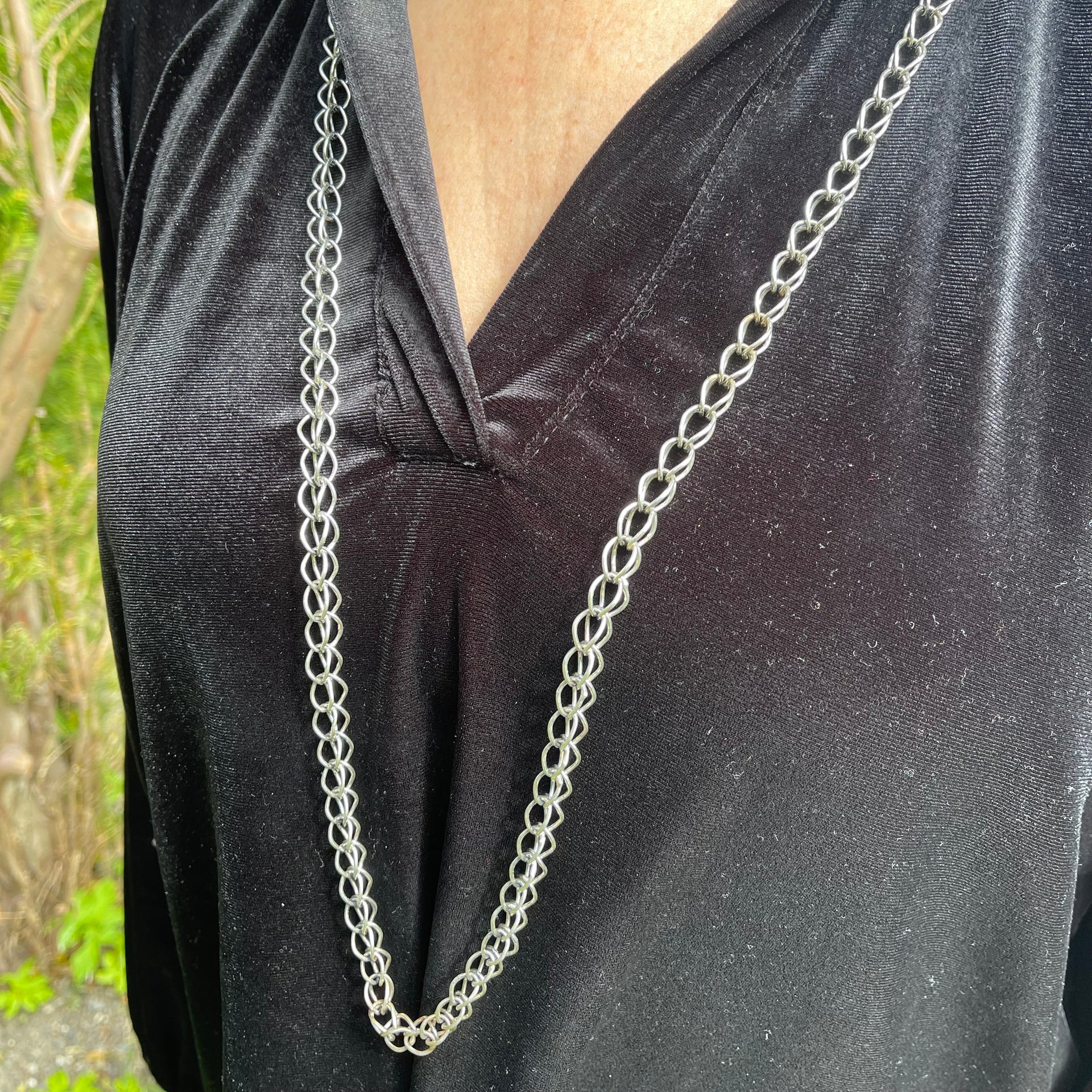 Each individual link is hand forged to create a beautiful easy to wear chain necklace. The chain can be worn long or wrapped again to create a more statement piece. Looks fabulous dressed up or dressed down for a more casual look.
