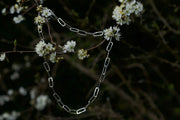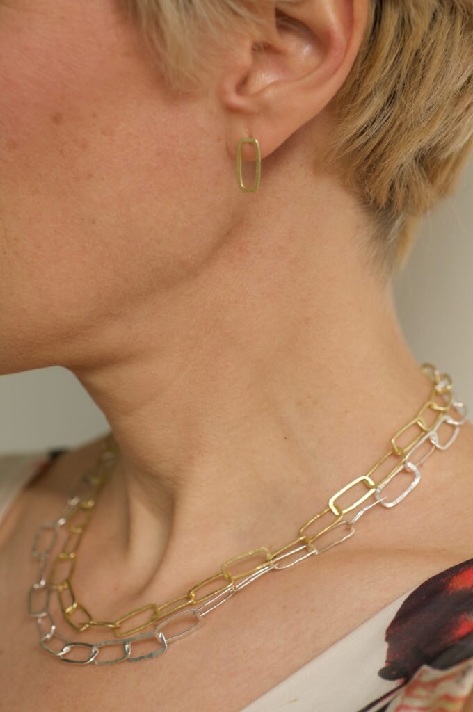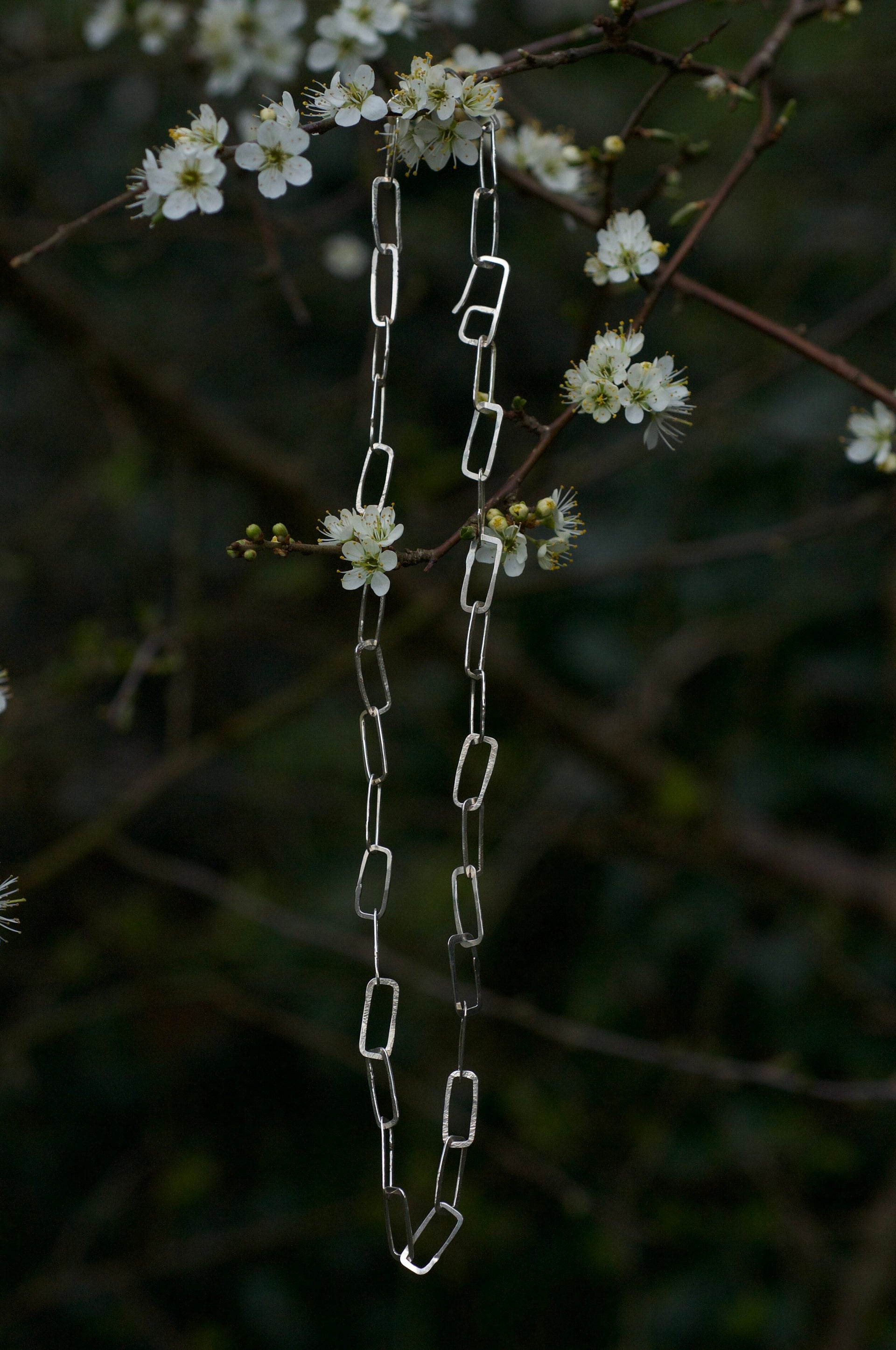 A beautiful, elegant necklace. Formed from hand-shaped rectangles and planished using Lucy's grandfather's old workshop hammers. This piece sits beautifully on the neck.