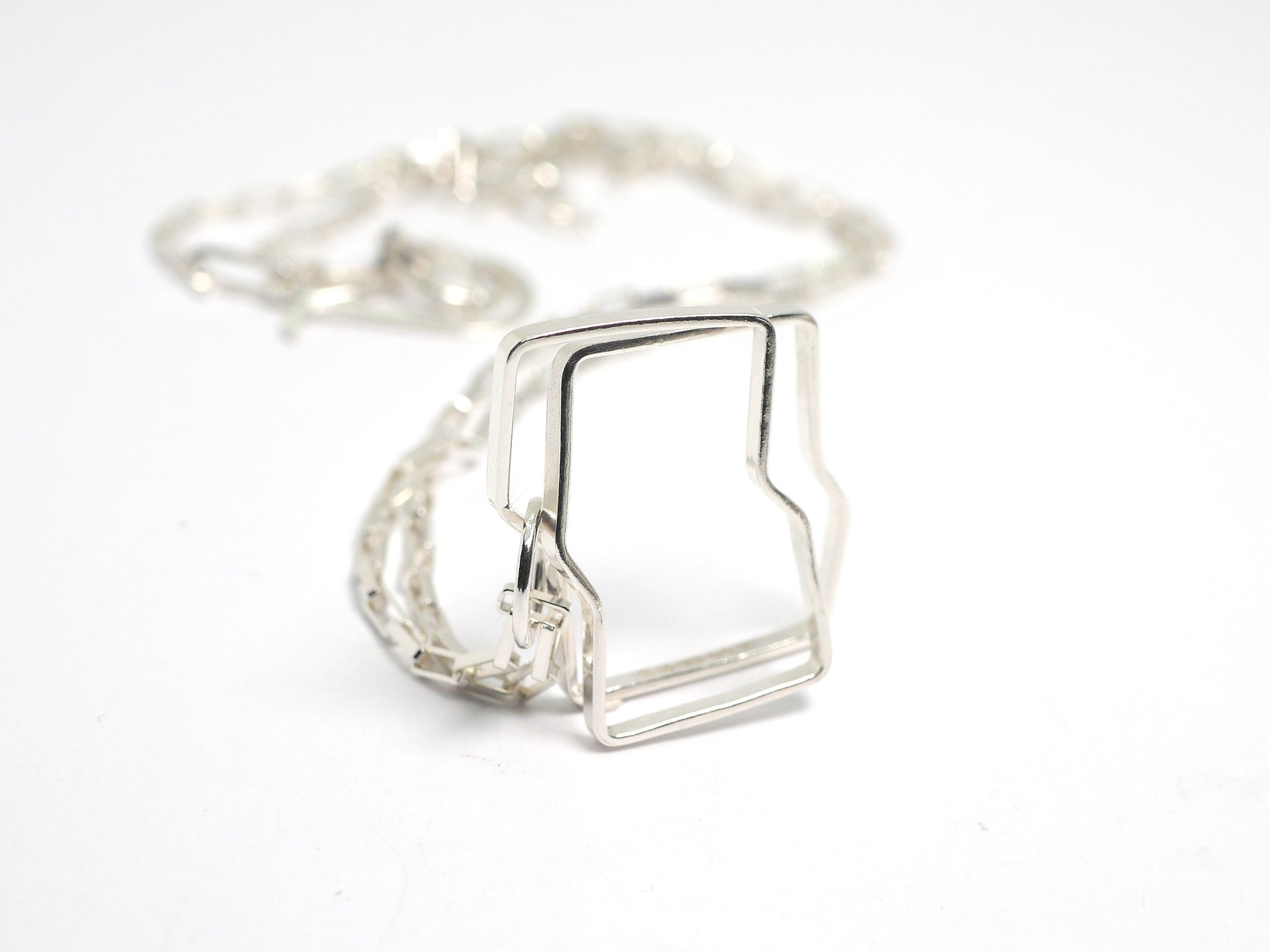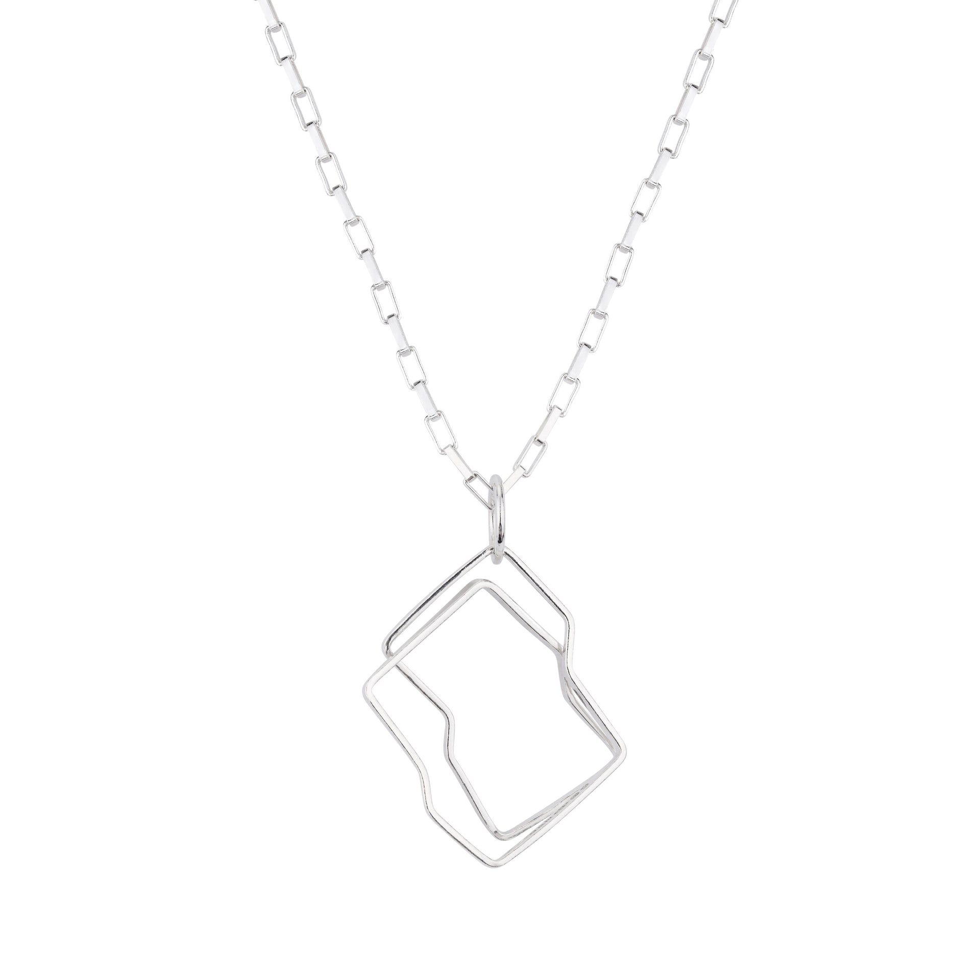 Created from a continuous length of sterling silver wire which is then hand-forged into a unique geometric shape. The continuous pendant looks stunning and perfect to take you and your outfit from day to night.