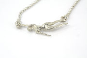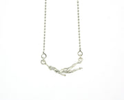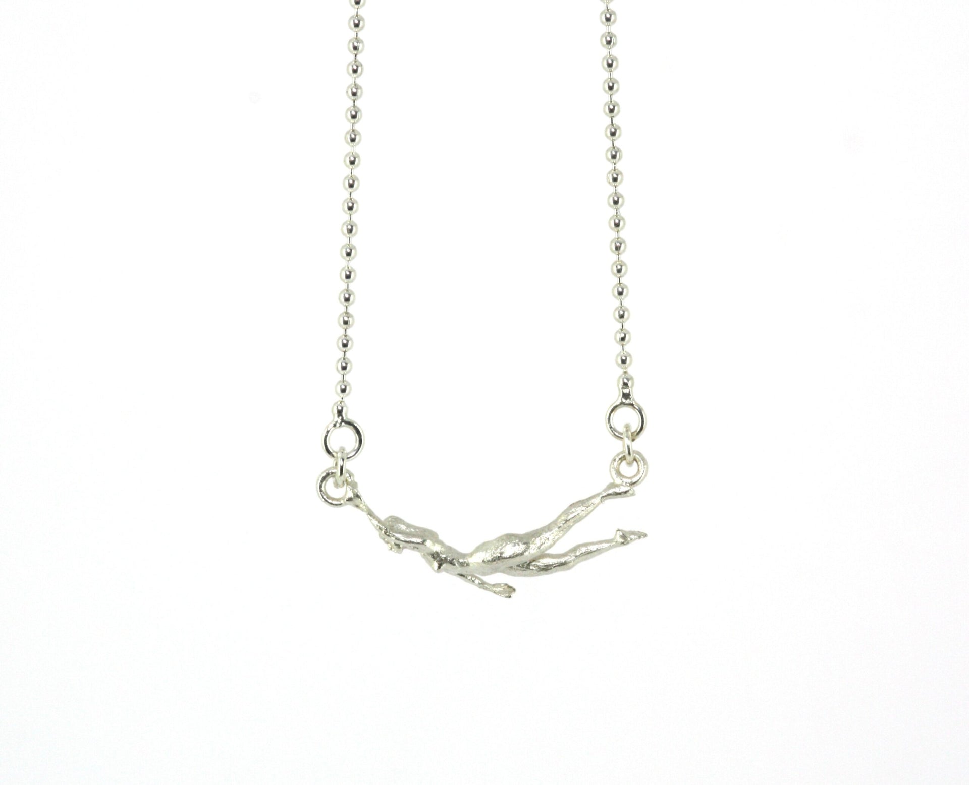A lovely swimmer is cast in sterling silver which is then suspended on a sterling silver chain.