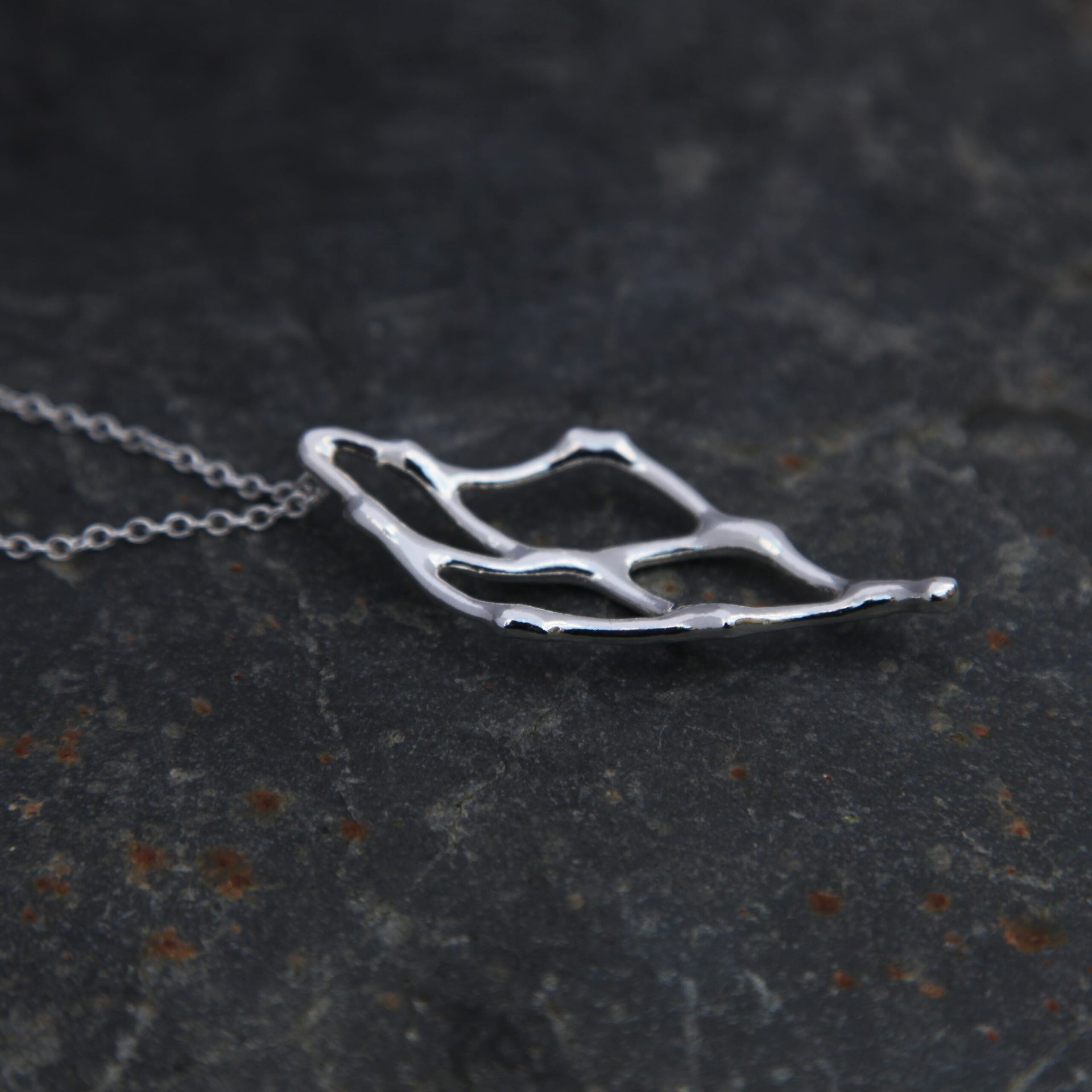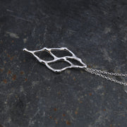 Inspired by the lattice forms in windows and netting, each fragment creates a play of shadow and light on the skin, creating unusual and timeless pieces. Elegant and versatile, this open shaped pendant is the perfect addition to your favourite outfit.