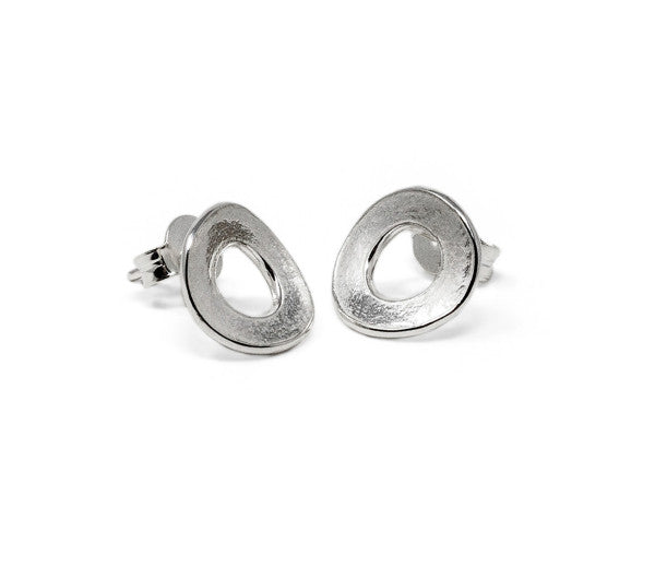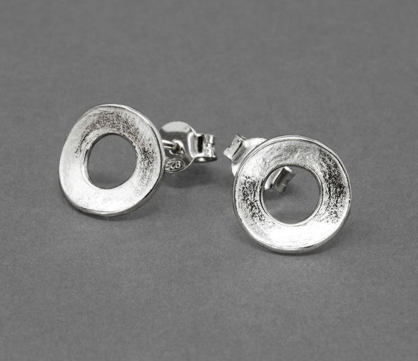 These hand-made contemporary stud earrings are hand-finished to make this unique hammered softly sparkling texture. They are small but perfectly formed, slightly domed with contrasting smooth sides.