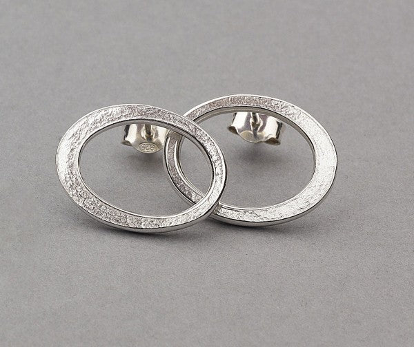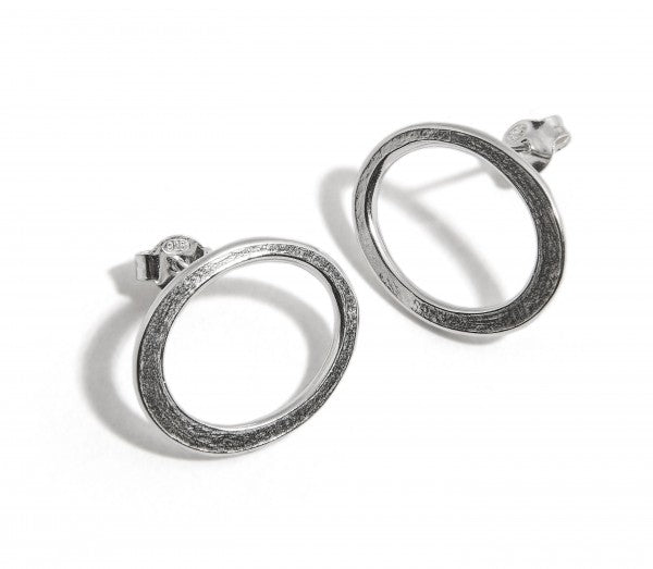 These elegant, contemporary designer earrings offer a saintly and sensual look, in minimalist, hand-forged off-centred ovals of beaten silver made to define your earlobe. The softly textured Halo motif studs add a graphic glamour to any look but would be a must for someone with a discerning eye for Scandinavian or Modernist design. Pair them with the Halo necklace to exude pure elegance!