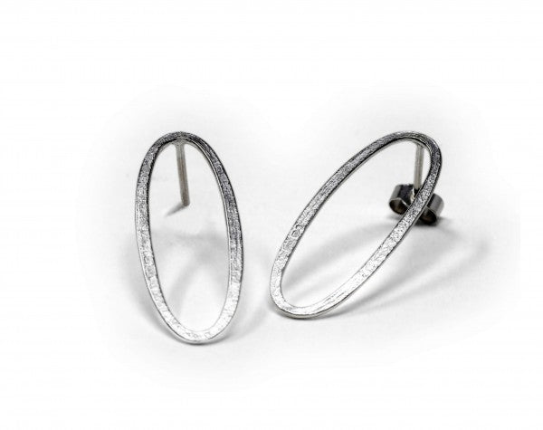 This delicate contemporary pair of drop earrings has all the precisely pitched textural qualities and style of SUPER NOVA. Each of the lozenge-shaped loops, with its clear references to contemporary Finnish design, is made by hand to have one shiny side and one softly textured side, in bright sterling silver, and the slim-line oval of the SUPER NOVA motif makes a perfect little drop earring which defines your lobes.