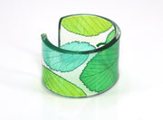 Stunning turquoise and lime whitebeam cuff bracelet made from recycled acrylic (perspex). Thanks to the lightweight material this colourful, eye-catching cuff is comfortable and can be worn all day.