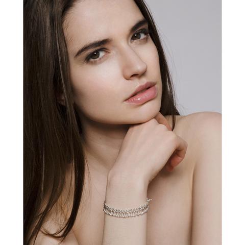 This silver bracelet is a thoughtful take on your conventional everyday bracelet offering a unique, subtle and elegant embellishment to daytime or work attire.