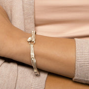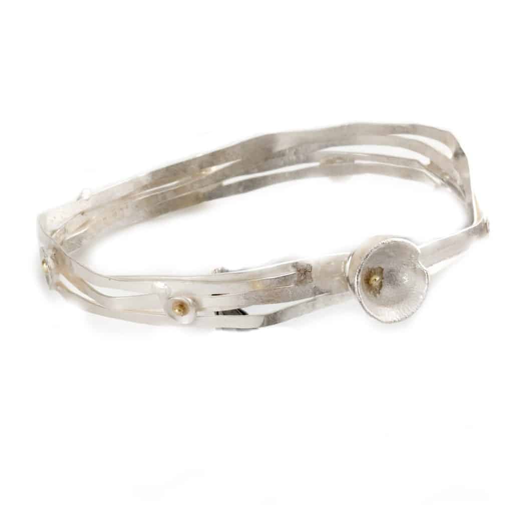 Hammered & textured silver wire is wrapped and woven before being set with 8 18ct gold centred acorn cups, these bracelets are beautifully simple and elegant.