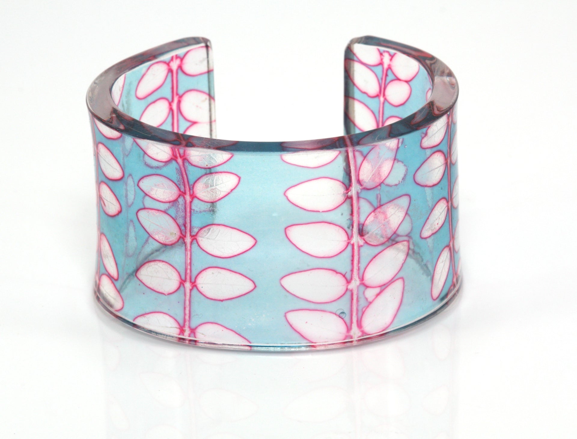Celebrating the beauty of nature this box hedge cuff displays every detail of the leaf. Created from recycled acrylic (perspex). Thanks to the lightweight material this colourful, eye-catching cuff is comfortable and can be worn all day.