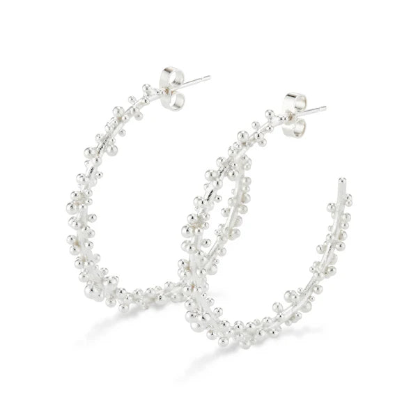 Absolutely gorgeous silver hoop earrings that feature the designer's trademark granulation technique.