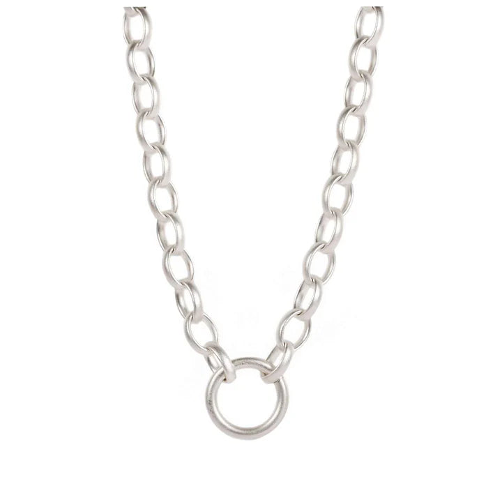 The perfect chain for your Sibyl pendants, featuring a statement central jump ring for your pedants to hang from, finished with a gorgeous satin texture. Closure in the back with a handmade S-Hook clasp.