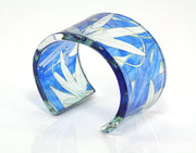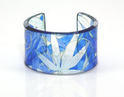 A bold and colourful perspex cuff made with real passionflower leaves and stems. Grown, designed and made in the UK from recycled materials.