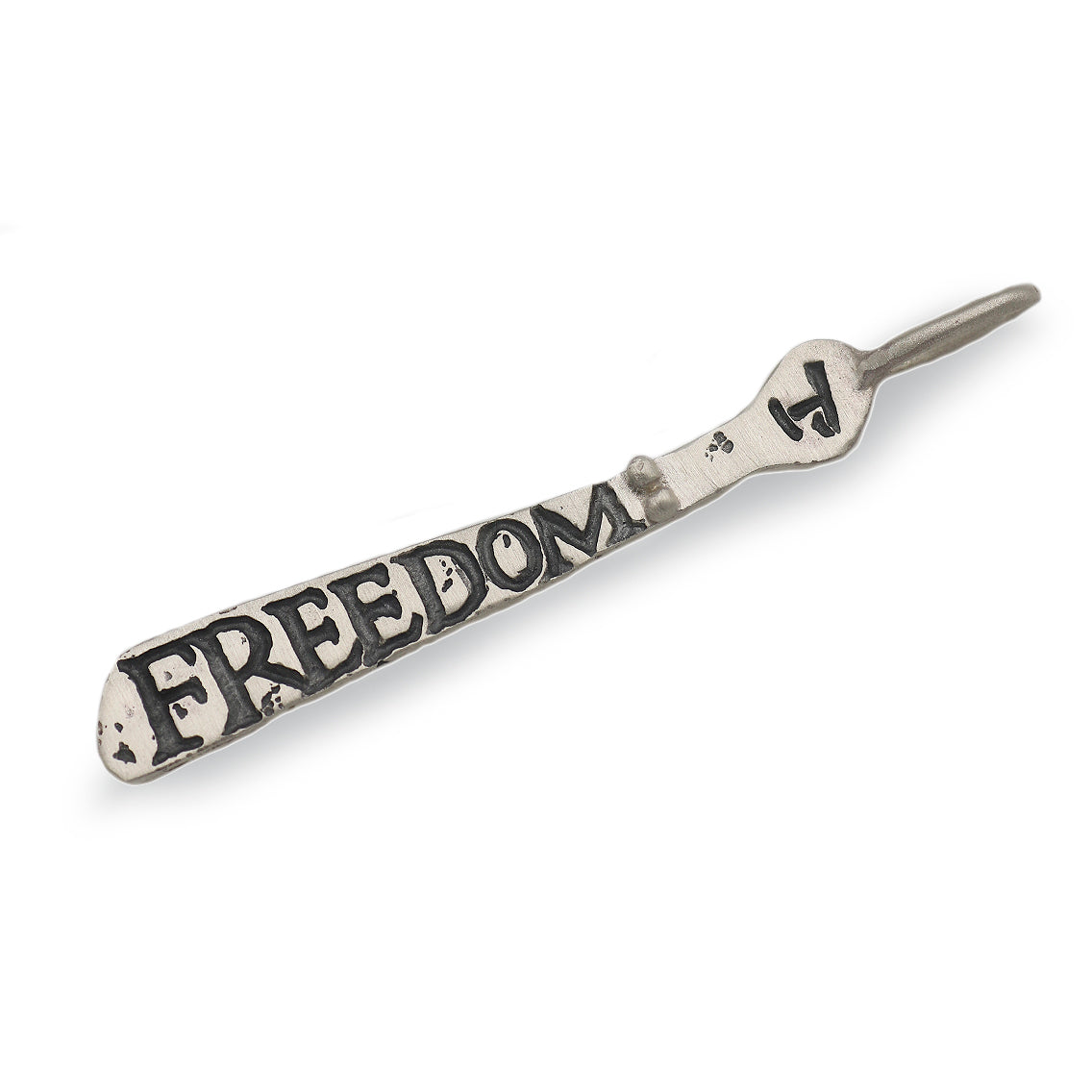 This silver sibyl pendant is etched with the word 'FREEDOM' and oxidised to create bold contrast. Made from recycled sterling silver and given a satin finish.