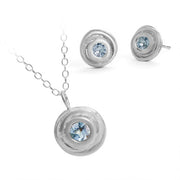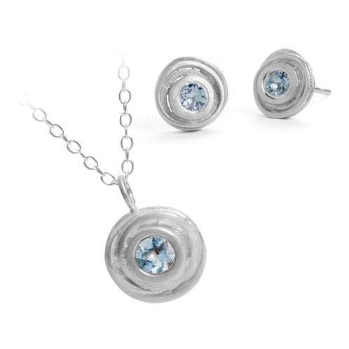 Swirls of silver delicately studded with a beautiful ice-cool aquamarine.