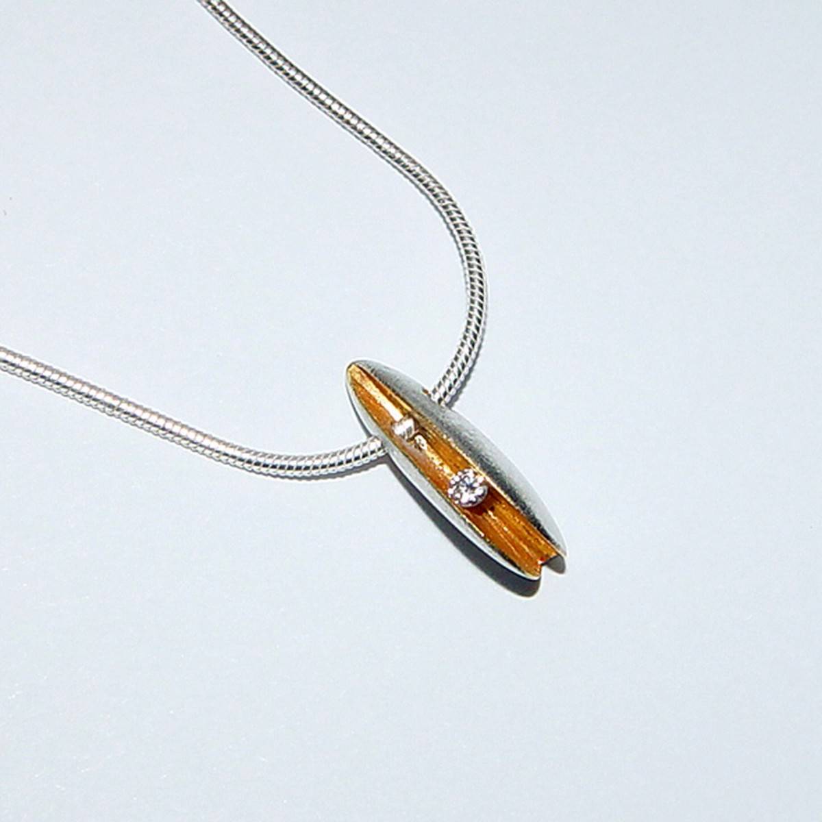 Small Silver, Gold & Diamond Shell Pendant / AVAILABLE IN STORE ONLY